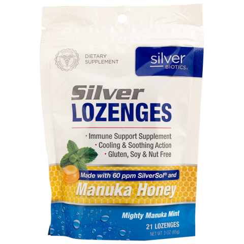Soothe your throat, while supporting your immune system. These silver lozenges are made with Cooling Organic Mint, Raw New Zealand Manuka Honey and infused with SilverSol Technology®.
