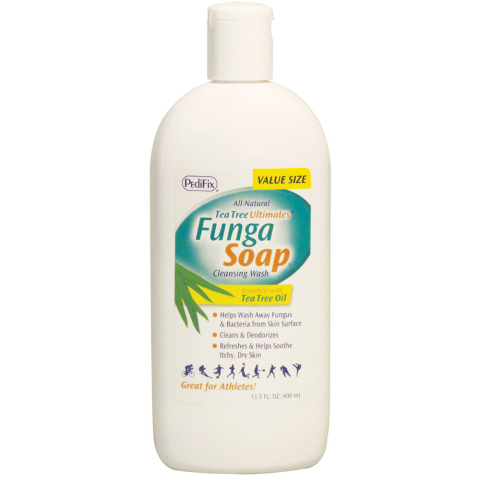 FungaSoap is an exclusive blend of all natural Tea Tree oil and botanical extracts that provide a powerful, yet gentle formula to help keep feet clean and healthy. Helps relieve the discomfort of dry, itchy feet, foot odor, and common skin irritations. It's a great all over body wash too!