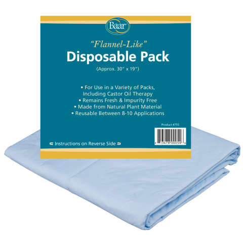 Baar's Disposable Pads are ideal for use with Castor Oil applications. They provide a convenient way to use Castor Oil Packs with no mess to clean. The one side of the pack is plastic coated for added protection from leakage. The opposite side is an absorbent, soft, flannel-like, plant material to which you would apply the Castor oil.